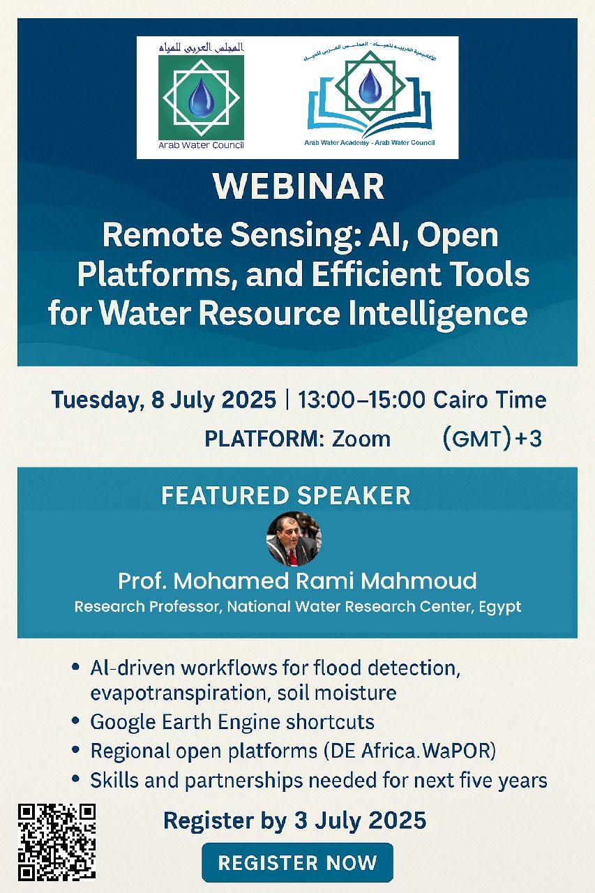 This webinar will explore innovative approaches that enhance the use of remote sensing for water resources assessment and informed decision-making. Drawing on practical experiences from the Middle East, the Gulf, and across Africa, the session will offer insights into both the potential and current limitations of AI-integrated geospatial tools.