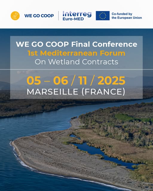 The WE GO COOP project will hold its Final Conference together with the 1st Mediterranean Forum on Wetland Contracts on 5–6 November 2025 at La Coque, Marseille (France). The event is open to the public and will run in a hybrid format (in person with limited seating and online via Zoom; registration required).